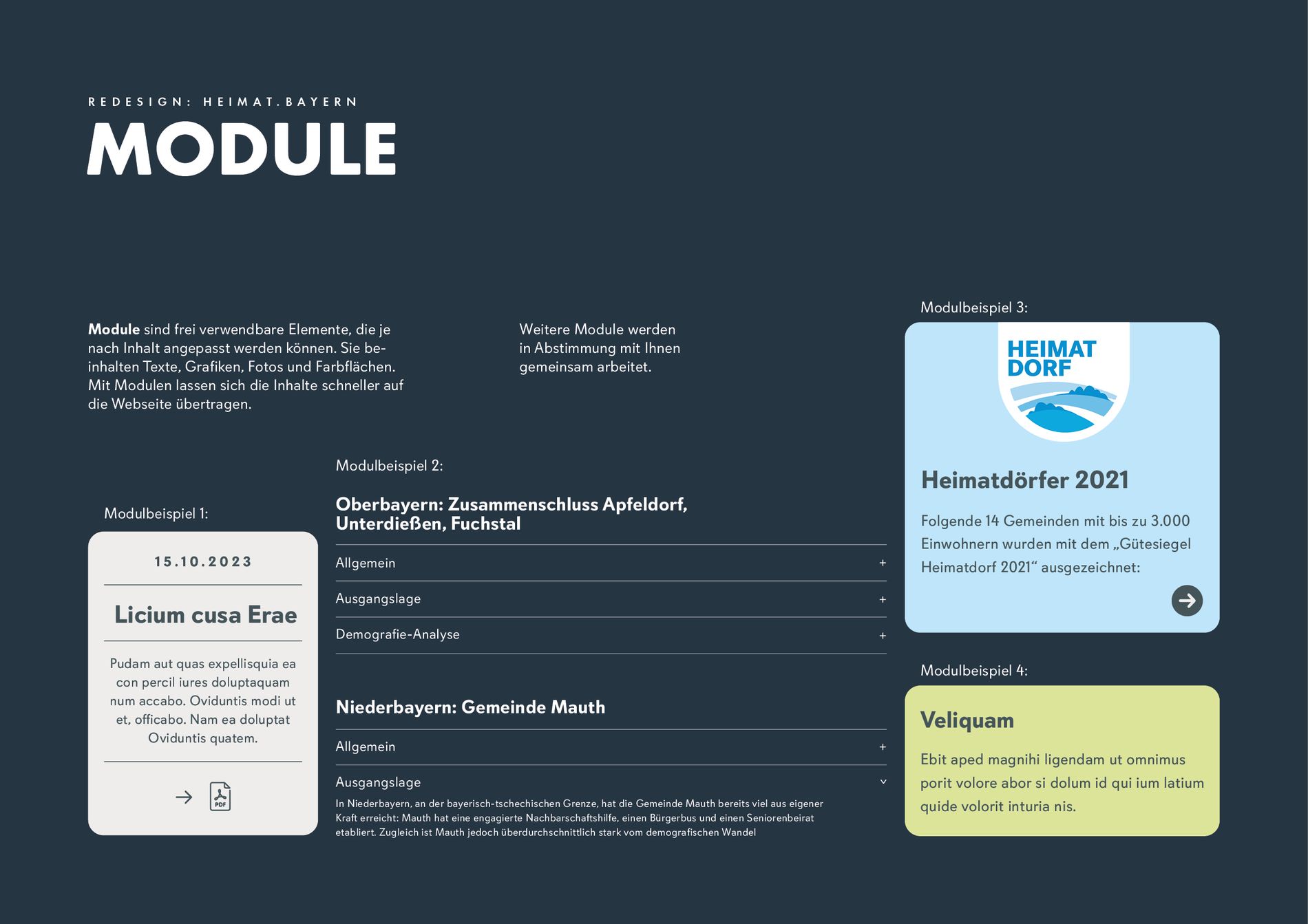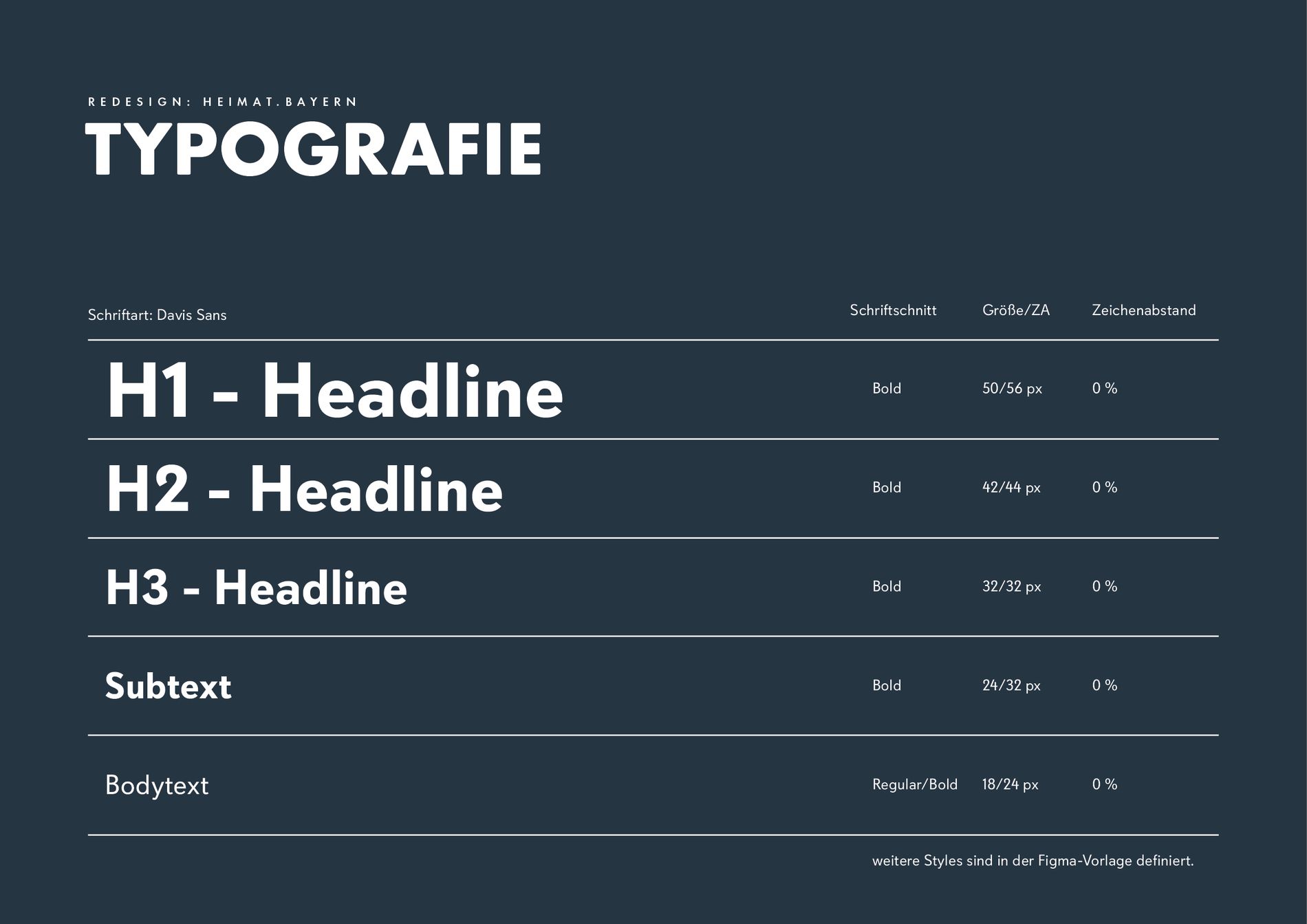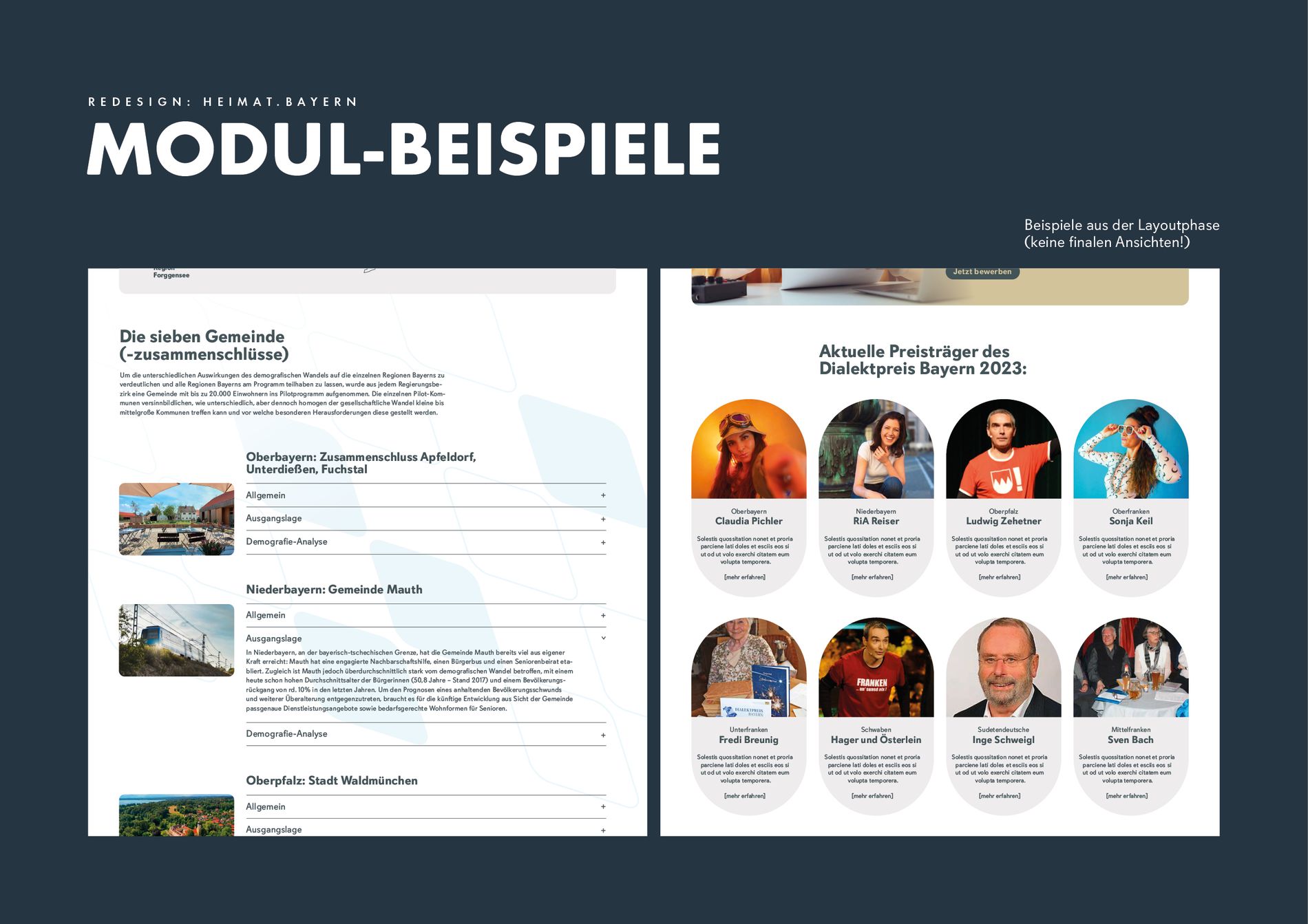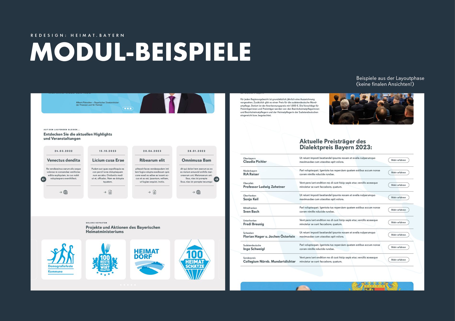 Nach der strategischen Phase mit gemeinsamer Auswertung ging es an die Umsetzung: Für heimat.bayern entstand ein klar strukturiertes, modernes Webdesign, das die Identität des Heimatministeriums authentisch transportiert. In den folgenden Screens zeigen wir zentrale Elemente der Gestaltung: das 12-spaltige Raster, das sowohl Struktur als auch Flexibilität ermöglicht, das konsistente Farbkonzept und die gut lesbaren Schriften.