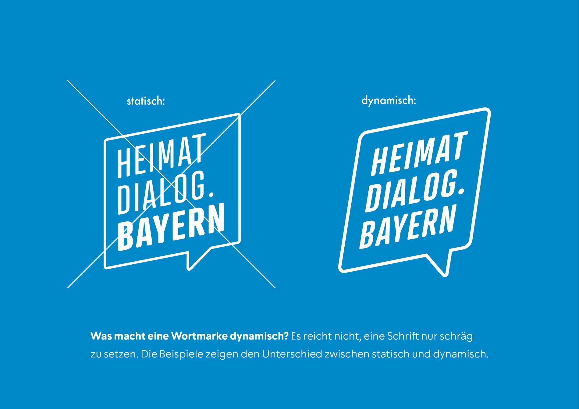 Für den Heimatdialog.Bayern haben wir ein visuelles Konzept entwickelt, das Dialog sichtbar macht. Im Mittelpunkt stand ein Logo, das Austausch, Offenheit und Bewegung symbolisiert – reduziert und klar.
