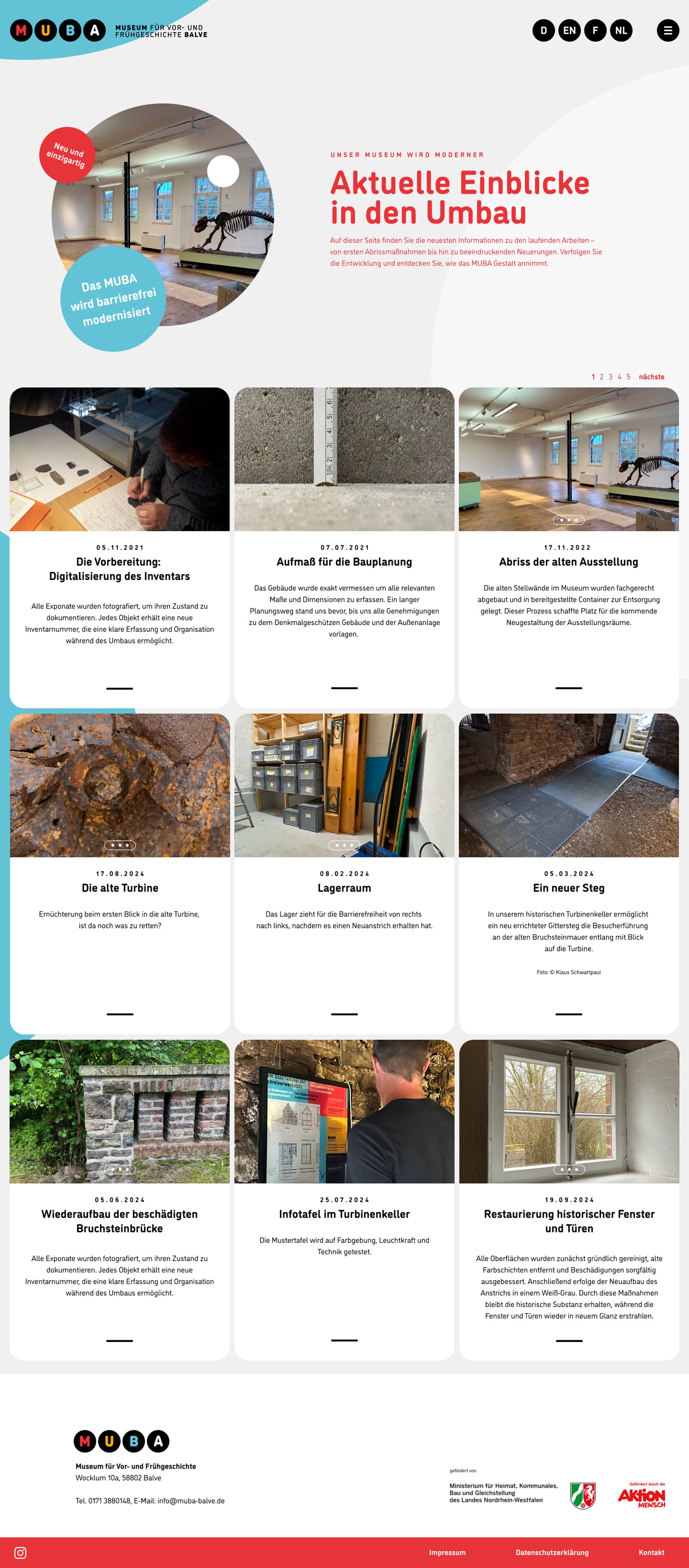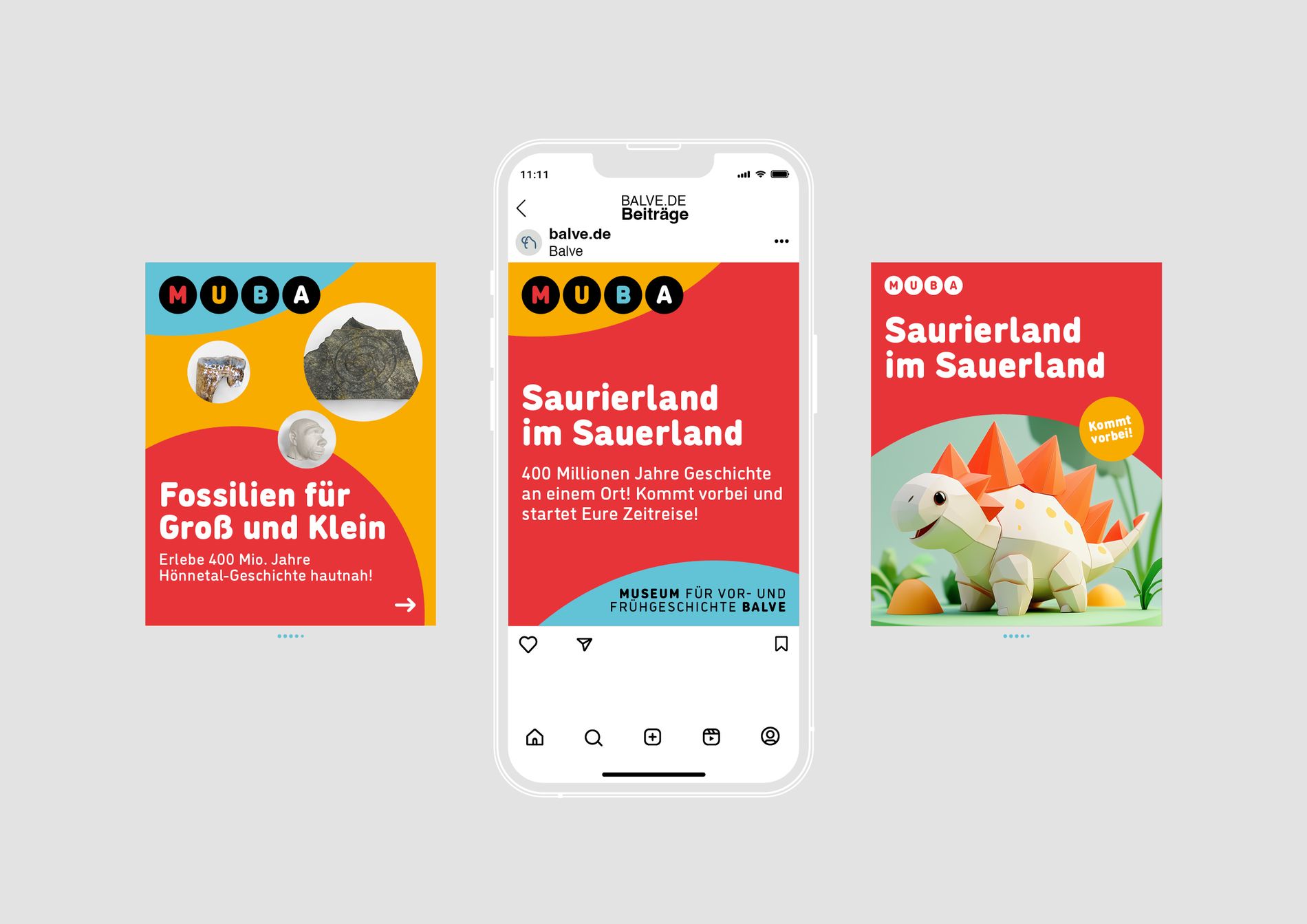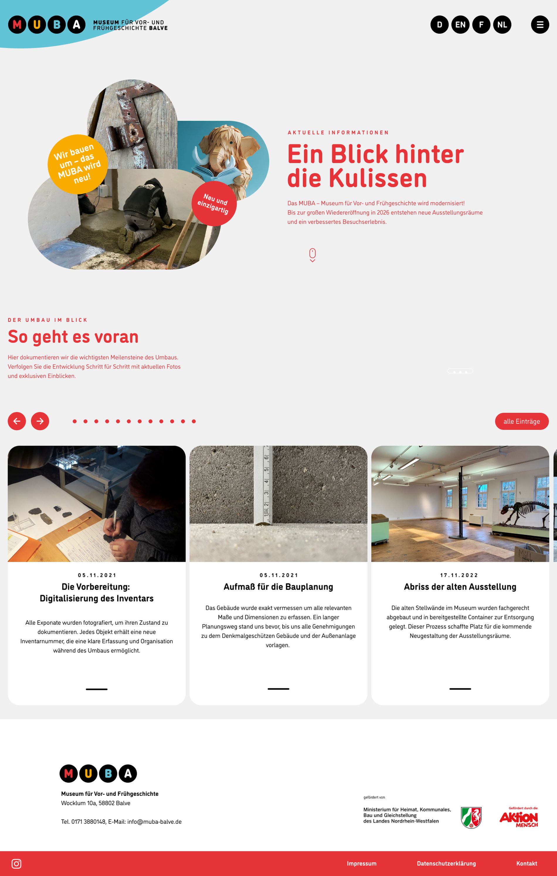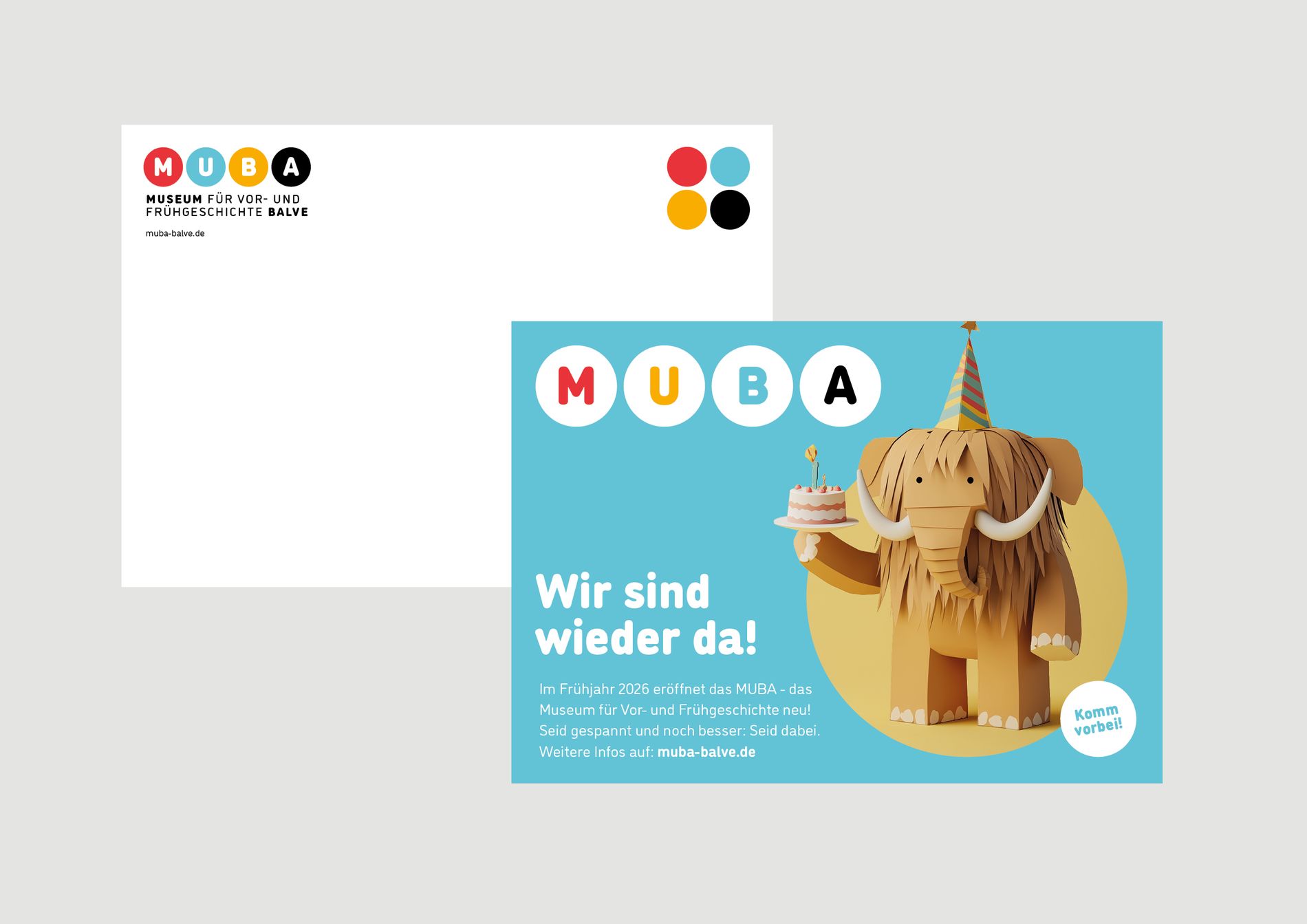Das MUBA steht für einen neuen Zugang zur Geschichte: interaktiv, offen und visuell klar kommuniziert. Das von uns entwickelte Erscheinungsbild übersetzt die Themen des Museums in eine verständliche und einprägsame Formsprache. Das Logo ist prägnant und flexibel einsetzbar – in Print, Leitsystem, Social Media und auf der Website. Die Gestaltung schafft einen starken visuellen Rahmen für die Vermittlung von Inhalten und richtet sich an Familien, Schulklassen und kulturinteressierte Besucher:innen gleichermaßen. So wird das MUBA zur einladenden Marke innerhalb des Geschichtsparks Balve.